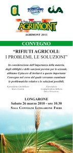 In occasione di Agrimont, il tradizionale appuntamento di inizio primavera che Longarone Fiere dedica all’agricoltura di montagna (25-27 marzo e 1- 3 aprile 2011) il socio Argav Edoardo Comiotto invita a partecipare al convegno “RIFIUTI AGRICOLI: I PROBLEMI, LE SOLUZIONI” che si terrà sabato 26 marzo 2010 alle ore 10:30 presso la Sala Convegni di Longarone Fiere.