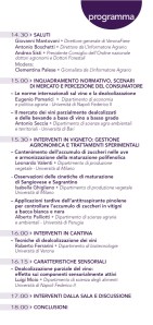 L’evento è suddiviso in due momenti. Alle 15, primo piano sulle norme internazionali che condizionano la dealcolizzazione, nell’intervento di Eugenio Pomarici, del Dipartimento di economia e politica agraria dell’Università di Napoli Federico II. Antonio Seccia, del Dipartimento di scienze agro-ambientali e territoriali dell’Università di Bari, approfondirà il mercato dei vini parzialmente dealcolizzati. Nella seconda parte del convegno verrà affrontata la gestione agronomica per armonizzare maturazione tecnologica e polifenolica da Leonardo Valenti e Isabella Ghiglieno, del Dipartimento di produzione vegetale dell’Università di Milano, con un approfondimento sulle cinetiche di maturazione di Sangiovese e Sagrantino, mentre Alberto Palliotti, del Dipartimento scienze agrarie e ambientali dell’Università di Perugia, illustrerà un trattamento sperimentale per il controllo dell’accumulo di zuccheri. Roberto Ferrarini, del Dipartimento di biotecnologie dell’Università di Verona, spiegherà le tecniche di dealcolizzazione dei vini, mentre Luigi Moio, del Dipartimento di scienza degli alimenti dell’Università di Napoli Federico II, si concentrerà sulle caratteristiche sensoriali di questi vini.