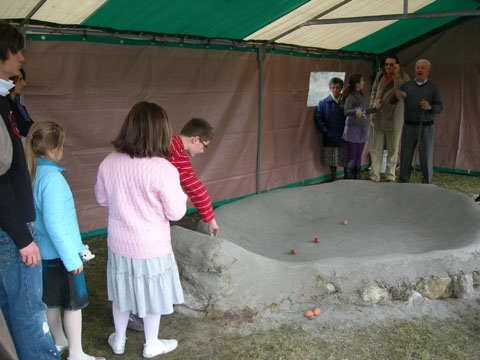 Che cos’è la righèa. È un gioco proprio della cultura contadina che da secoli si pratica nella settimana successiva a Pasqua. Si costruisce un piccolo catino di terra e sassi, creta e fango: si lavora di gruppo, di pala, cazzuola e olio di gomito. Lungo le sponde del catino a turno i giocatori fanno rotolare uova sode, dipinte da ciascuno a colori vivaci per distinguerle; lo scopo è di colpire le uova avversarie, ammaccandole senza danneggiare le proprie, o di far raggiungere all’uovo la moneta gettata nel campo, che viene vinta. Una pasqualissima combinazione di bocce e biliardo… che coinvolge giocatori da 0 a 99 anni. E quando le uova a furia di tirarle si ammaccano? Un po’ di sale, e gnam! Il dialetto vittoriese ancora conserva i nomi specifici delle pratiche e degli strumenti del gioco della righèa: come il ranzìn, un bastoncino ripiegato ad una estremità, utilizzato per ripescare dal catino le uova.