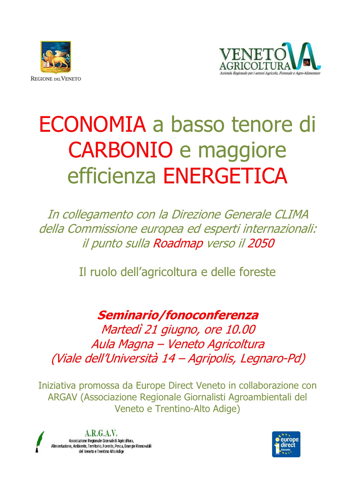 Filed under: Ambiente | Tagged: ARGAV seminario Clima Energia, riduzione emissioni gas serra, Roadmap 2050, seminario Veneto Agricoltura Clima Energia |