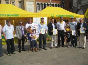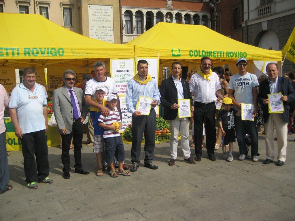I cittadini hanno lasciato un’offerta volontaria e simbolica per premiare il lavoro dei produttori che, secondo Mauro Giuriolo, presidente provinciale di Coldiretti Rovigo, a fronte del crollo dei prezzi in campo registrano una remunerazione pari al 50% del costo di produzione, mentre al consumo si assiste all’aumento medio  del 14 % rispetto all’anno scorso.A peggiorare la situazione anche la Grande Distribuzione Organizzata che preferisce siglare accordi con l’estero, scegliendo prodotti a qualità inferiore rispetto alle eccellenze del Made in Italy”.