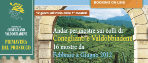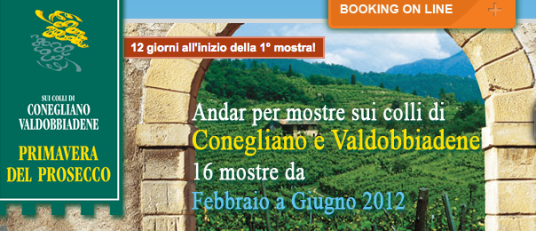 Le 14 mostre della Primavera del Prosecco Superiore. 33^ Mostra del Valdobbiadene Docg di Colbertaldo e Vidor, dal 25.02.1012 al 11.03.2012 – Vidor; 43^ Mostra Cartizze e Valdobbiadene Docg, dal 17.03.2012 al 01.04.2012 – Santo Stefano; 44^ Mostra del Valdobbiadene Docg, dal 24.03.2012 al 09.04.2012 – Guia; Col San Martino 56^ Mostra del Valdobbiadene Docg, dal 24.03.2012 al 15.04.2012 – Col San Martino; 48^ Mostra dei Vini d’Annata, dal 31.03.2012 al 09.04.2012 – Villa di Cordignano; 42^ Mostra Cartizze e Valdobbiadene, dal 07.04.2012 al 25.04.2012 – San Pietro di Barbozza; 4^ Mostra del Prosecco e dei vini dei Colli di Conegliano, dal 13 al 15.04.2012 e dal 20 al 22.04.2012 – Conegliano; 10^ Mostra Cartizze e Valdobbiadene Docg, dal 14.04.2012 al 25.04.2012 – San Giovanni; 34^ Mostra del Conegliano Valdobbiadene, dal 14.04.2012 al 01.05.2012 – Miane; 38^ Mostra del Torchiato Doc di Fregona, dal 21.04.2012 al 01.05.2012 – Fregona; Mostra dei Vini 43^ Edizione 2012 – Esposizione del Refrontolo Passito Docg e del Conegliano Valdobbiadene Docg, dal 28.04.2012 al 13.05.2012 – Refrontolo; É Verdiso 23^ Mostra del Vino e delle Grappe di Verdiso, dal 04.05.2012 al 13.05.2012 – Combai; 13^ Mostra dei Vini e delle Grappe ‘Città di Vittorio Veneto – Il Vino e l’Arte’, Dal 11.05.2012 al 27.05.2012 – Vittorio Veneto; 43^ Mostra Intercomunale del Vino Superiore dei colli, dal 19.05.2012 al 03.06.2012 – Corbanese; 41^ Mostra dei Vini di collina, dal 26.05.2012 al 10.06.2012 – San Pietro di Feletto; 4^ Mostra dei Vini in Loggia, dal 15 al 17.06.2012 e dal 22 al 24.06.2012– Serravalle – Vittorio Veneto.