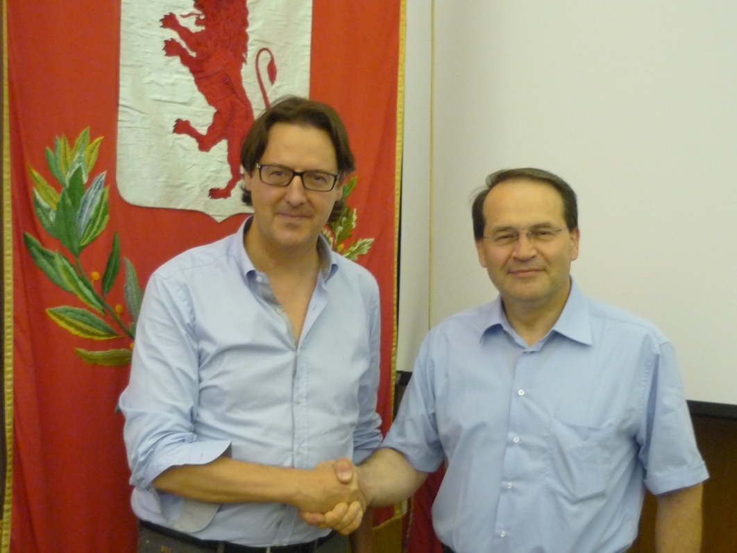 17 luglio 2013, Comune Chioggia, premiazione Meraviglia Italiana, da sx sindaco Giuseppe Casson e Carmelo Lentino consigliere Forum Nazionale Giovani