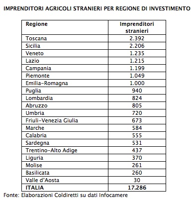 Il Veneto agricolo piace agli stranieri. A rivelarlo è Coldiretti in base ai dati di Infocamere che evidenziano la presenza su territorio regionale di 1.235 nuovi imprenditori agricoli di nazionalità diversa da quella italiana.