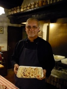 Efrem Tassinato, chef-giornalista, presidente Wigwam, socio Argav e tesoriere Unaga, mostra i dolcetti di Pontelongo (PD)