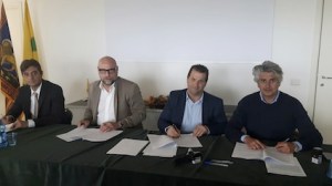 a sinistra per Snam p.m. Pasquale Alessandro Brengola, per Cia il presidente Gianmichele Passarini, per Coldiretti il presidente Martino Cerantola, per Confagricoltura il presidente Lodovico Giustiniani
