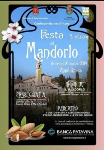 Alla Festa del Mandorlo di domenica sono in programma il mercatino con gustosi piatti a base di mandorle dai ristoratori e lungo le vie del borgo. Alle 14 la passeggiata guidata tra i mandorli con partenza dal sagrato della chiesa di Arquà.