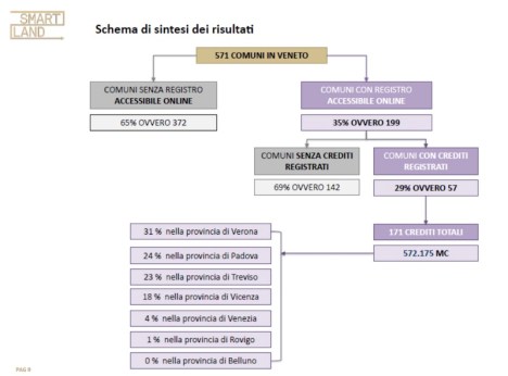 Lo stato dell’arte dei crediti edilizi. “Serviva, infatti – ha continuato Bonomo – prima di tutto quantificare con precisone la presenza dei crediti edilizi sui registri comunali accessibili online per capire se il metodo previsto dalla legge regionale 11/2004 funziona e come potrebbe funzionare con il nuovo strumento normativo proposto dal PDL 402. E’ risultato che 372 comuni su 571 (65%) non hanno un registro e che, dei 199 comuni che hanno reso accessibile online il Registro dei Crediti Edilizi, soltanto 57 hanno al loro interno dei crediti registrati (il 35% dei comuni con il registro accessibile e il 10% dei comuni del Veneto). Dei 57 comuni, il 72% riporta sul proprio registro da 1 a 3 pratiche di crediti edilizi registrati e il 18% da 3 a 6 pratiche. Sono soltanto due i comuni con un numero di pratiche di crediti edilizi registrati superiore a 10. Se si passa poi alla loro quantificazione (numero e volumetrie) emerge che, in totale, in Veneto sono 171 i crediti edilizi per un totale di 572.175 mc. Due su tre sono concentrati nelle province di Verona (31%), Padova e Treviso (con rispettivamente il 24% e il 21% delle volumetrie totali). A Vicenza ricadono il 18% delle volumetrie mentre nella città metropolitana di Venezia appena il 4%; risultano quasi prive le province di Belluno e Rovigo”.