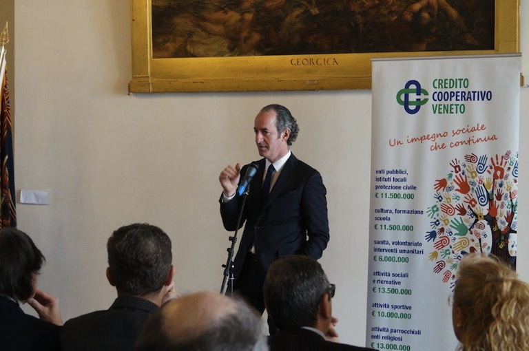 ZAIA BANCHE CREDITO COOPERATIVOUn protocollo di intesa tra la Regione del Veneto e la Federazione Veneta delle Banche di Credito Cooperativo per contribuire alla prevenzione dalle catastrofi ambientali. E’ quanto è stato siglato ieri tra il presidente della Regione Veneto Luca Zaia e il presidente della Federazione, che riunisce le 32 banche di credito cooperativo presenti sul territorio veneto, Ilario Novella.