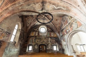 La Città vecchia è composta dal borgo originario con edifici caratterizzati da bovindi, pergole e archi un tempo occupati da botteghe e artigiani, oggi da ristoranti, dove si possono gustare pietanze tipiche, e negozi. Qui, in piazza Città, dove peraltro ogni venerdì si tiene il mercato dei contadini dell’Alta Val Venosta, c’è la magnifica chiesa di S. Spirito (1399), una delle chiese gotiche meglio conservate di tutto l’Alto Adige e che, nel Medioevo, apparteneva alla struttura ospitale che dava vitto e alloggio a forestiere e pellegrini, in cui oggi sono ospitati anche gli uffici di informazione turistica, da cui partono, da maggio a ottobre, ogni venerdì alle ore 16, le visite guidate della città di un’ora circa. Gli affreschi presenti nella chiesa (foto in alto), che risalgono al primo decennio del Quattrocento e sono opera del maestro Johannes di Brunico, restaurati verso la fine degli anni Ottanta del secolo scorso, sono fortemente influenzati dalle opere di Giotto e ricordano lo stile della Cappella degli Scrovegni a Padova. Purtroppo, da agosto 2024, la chiesa sarà chiusa per degli interventi architettonici interni, per cui non sarà visitabile per alcuni mesi.