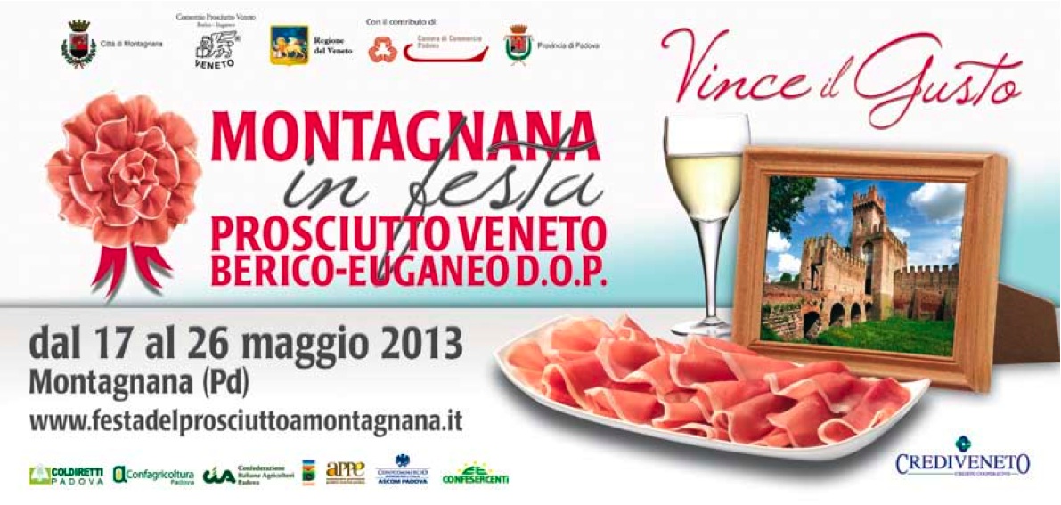 brochure-2013Da venerdì 17 a domenica 26 maggio 2013 torna nel padovano “Montagnana in Festa. Prosciutto Veneto Berico-Euganeo D.O.P. Vince il gusto”: dieci giorni dedicati a sapori, incontri, spettacoli, visite guidate e degustazioni all’insegna del crudo dolce montagnanese, lavorato con i metodi e le attenzioni della tradizione artigianale.