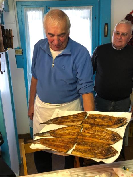 16 novembre 2019, Giuliano Poli serve l’anguilla alla brace, specialità locale