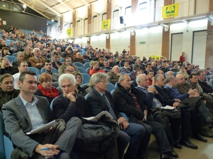 Platea2Al convegno tenutosi a Rovigo sabato 2 marzo scorso sul problema del mais contaminato dalle aflatossine c’erano i produttori in un numero imponente, oltre settecento; c’erano le loro rappresentanze, quelle che da subito si sono fatte carico del problema e hanno promosso l’evento, cioè Confagricoltura, CIA, Confcooperative Fedagri, A.M.I. (Associazione Italiana Maiscoltori); c’era l’AIRES (Associazione Italiana Raccoglitori e Stoccatori) e COMPAG (Federazione Commercianti Prodotti per l’Agricoltura), anch’esse fra gli organizzatori della giornata; c’era il mondo accademico, presente di persona con l’Università di Padova e, attraverso un’apprezzata relazione, con quella di Torino. E tutti erano decisi a pretendere risposte chiare su di una vera e propria calamità, che, in conseguenza del lungo periodo di siccità e delle elevate temperature della scorsa estate, sta minacciando i raccolti e quindi i redditi dei maiscoltori.