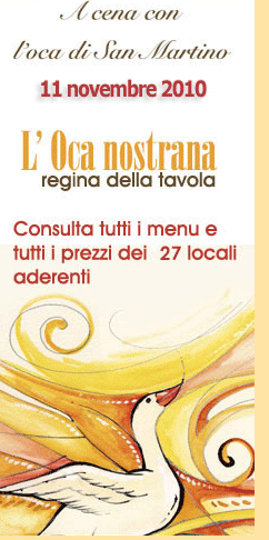 A San Martino, si mangia l’oca in questi locali. Durante questo mese sarà possibile assaporare le pietanze a base di oca nei seguenti ristoranti: Al Palazzon – Galliera Veneta, Al Pirio – Torreglia, Al Ponte – Ponte San Nicolò, Alla Nave – Masi, Alle Logge – Piazzola Sul Brenta, Antica Trattoria Al Bosco – Saonara, Antica Trattoria Antenore – Torreglia, Antica Trattoria Ballotta Dal 1605 – Torreglia, Antica Trattoria Dei Paccagnella – Padova, Antica Trattoria Taparo – Torreglia, Antica Trattoria Zattarin – Vigodarzere, Belvedere – Galzignano Terme, Belvedere – Montegrotto Terme, Berton – Padova, Boccadoro – Noventa Padovana, Casa-Nova – Selvazzano Dentro, Cavino – San Giorgio Delle Pertiche, Da Giovanni – San Giorgio in Bosco, Di…Vino – Saonara, Dotto Di Campagna – Padova, El Rustego – Rubano, Enoteca San Daniele – Torreglia, I Gelsi – Megliadino San Fidenzio, Il Grottino – Padova, In Corte Dal Capo – Conselve, La Brenta Vecchia – Vigodarzere, La Bulesca – Selvazzano Dentro, La Campagnola – Campodarsego, La Famiglia – Correzzola, La Griglia – Torreglia, La Montecchia – Selvazzano Dentro, La Tavolozza – Torreglia, La Torresina – Mestrino, Le Chiocciole – Pianiga (Ve), Locanda Aurilia – Loreggia, Luca’s – Trebaseleghe, Miramonti – Torreglia, Monticello – Teolo, Nerodiseppia – Padova, Osteria Ca’ Di Valle – Baone, Peppotto Enoteca – Padova, Piccolo Marte – Torreglia, Piroga Padova – Selvazzano Dentro, Rifugio Monte Rua – Torreglia, Tunnel – Vigonza, Vaccese – Saccolongo, Val Pomaro – Arqua’ Petrarca.