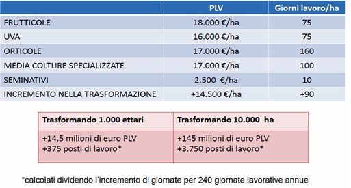 In Veneto ogni anno vengono erogati 5 miliardi di metri cubi di acqua, di cui il 95% derivante da acque superficiali ed il rimanente 5% da acque sotterranee. Le superfici agricole soggette ad irrigazione ammontano a 600mila ettari, 400mila di soccorso e 200mila strutturata. Le aree agricole sono dotate di una rete di canali di servizio consortile di circa 18500 km di cui 10000 km di tipo promiscuo e 8500 ad uso irriguo esclusivo. La disponiblità idrica e la gestione dell’irrigazione da parte dei Consorzi permette la coltivazione di 504mila ettari a seminativo, 76mila ettari di vigneti, 27720 ettari di orticole e 15mila ettari di frutteti, per una produzione agricola lorda di 5,5 miliardi di euro all’anno, con un valore di esportazione di 420milioni di euro (22% sul totale nazionale).