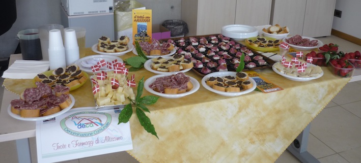 Sapori (e noci) soprendenti. Oltre al tartufo, abbiamo assaggiato altre prelibatezze, tra cui la trota e il formaggio di montagna del comune di Altissimo, entrambi prodotti De.Co. (Denominazione Comunale), presentati nell’occasione dal sindaco Liliana Monchelato. Altissimo ha una solida tradizione nel settore della troticoltura. Le trote fario e iridea sono allevate in peschiere alimentate dalle acque del fiume Chiampo e vengono nutrite con mangimi naturali. La trota, preparata ai ferri o fritta, è protagonista di una festa che si tiene ogni maggio ad Altissimo ed è curata dall’Associazione GS Molino (maggiori info Adriano Gefry Cracco tel. 335-7755373). Il formaggio, invece, è prodotto dal Caseificio Cooperativa di Altissimo (tel. 0444-487114), è fatto solo con latte crudo, stagionato da 2 mesi a 2 anni, ed è l’unico autorizzato nel territorio a chiamarsi “formaggio di montagna”, essendo il Caseificio, i pascoli e le aziende agricole che conferiscono il latte situate ad una altitudine superiore ai 600 metri. Parte del formaggio in degustazione era farcito con le noci di Altissimo, la cui grandezza ha colpito tutti i presenti.