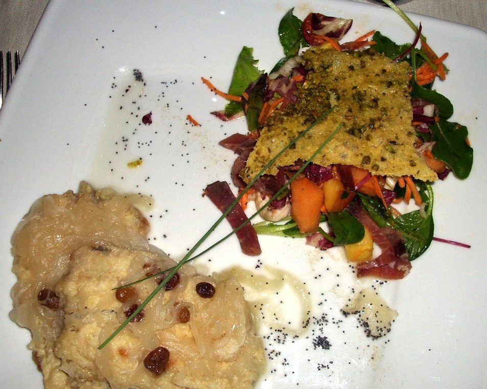 La Maison, insalatina sfiziosa con verdure, frutta e julienne di speck