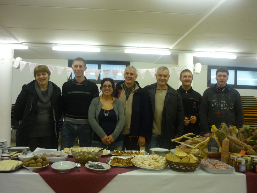 “Vivere in pendenza, fa la differenza”: così il presidente ARGAV Fabrizio Stelluto ha salutato la tenacia e la bella predisposizione d’animo dei segusinesi che ci hanno accolto. A partire dal secondo dopoguerra, l’economia del luogo, infatti, era basata sull’occhialeria, settore produttivo oggi non più fiorente come un tempo. Così, i segusinesi stanno ritornando alle origini riscoprendo i sapori della tradizione contadina e hanno dato avvio a Piccole Produzioni Locali, un sistema promosso da piccoli produttori che coniuga tradizione e rispetto delle norme igenico sanitarie manentenedo vivi i sapori di un tempo, come ad esempio lo s-cèk, il formaggio tipico di Segusino, originariamente prodotto solo in versione morbida con l’aggiunto del caglio al latte appena munto ed oggi proposto anche nelle deliziose tipologie fresco e stagionato di 3, 6 e 12 mesi. Oltre allo s-cèk, prodotto dal caseificio di Dario Stramare (via San Rocco 51, Segusino, cell. 340.6352987), fiorente è la produzione di salumi e sopresse (riferimenti Azienda Agricola Coppe Fernando, via San Rocco 26, Segusino, cell. 340.5990937, che produce anche ottime marmellate e le rinomate patate da Milies e Azienda Agricola Stramare Giulio, via Fossà 7, Segusino, cell. 349-8706227), l‘allevamento di oche ruspanti di montagna (Azienda Agricola Riva dei Coz di Giovanni Coppe, via riva Secca 100, Segusino, cell. 340.0652189) e la produzione locale di Prosecco (Azienda Agricola La Roia, via Cavarne 23, cell. 338-6736834). Nell’occasione, i soci ARGAV hanno avuto la possibilità di visitare anche un altro piccolo produttore di vino, l’Azienda Agricola di Raul Bortolin “Riva Cironel” (via Cironel 1, Guia di Valdobbiadene cell. 339-2064160) che produce in diverse tipologie un ottimo Prosecco.