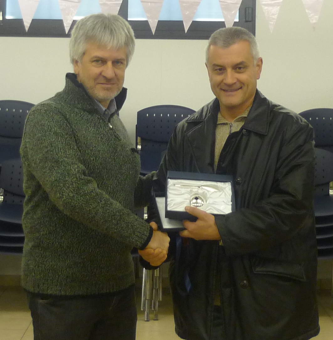 Il presidente Fabrizio Stelluto fa omaggio al sindaco di Segusino Guido Lio della penna ricordo ARGAV
